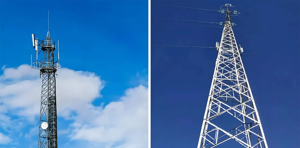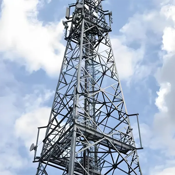 Uhlové oceľové veže: Vďaka rovnomerne rozmiestnenej mriežkovej priehradovej konštrukcii ponúkajú tieto veže vysokú nosnosť. Môžu súčasne podporovať viacero súprav antén a mikrovlnných prenosových zariadení, vďaka čomu sú obzvlášť vhodné pre otvorené oblasti, ako sú predmestia a horské oblasti, kde sa vyžaduje vysokokapacitná komunikačná záťaž.